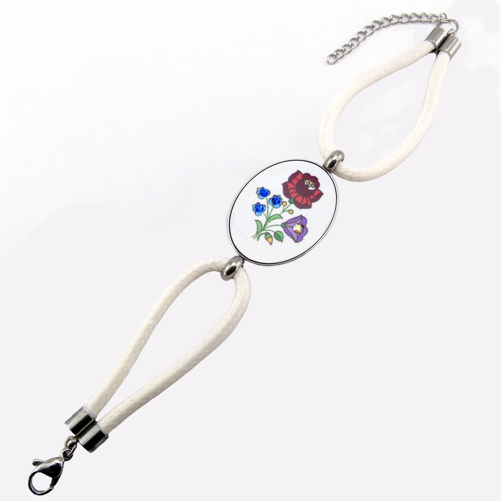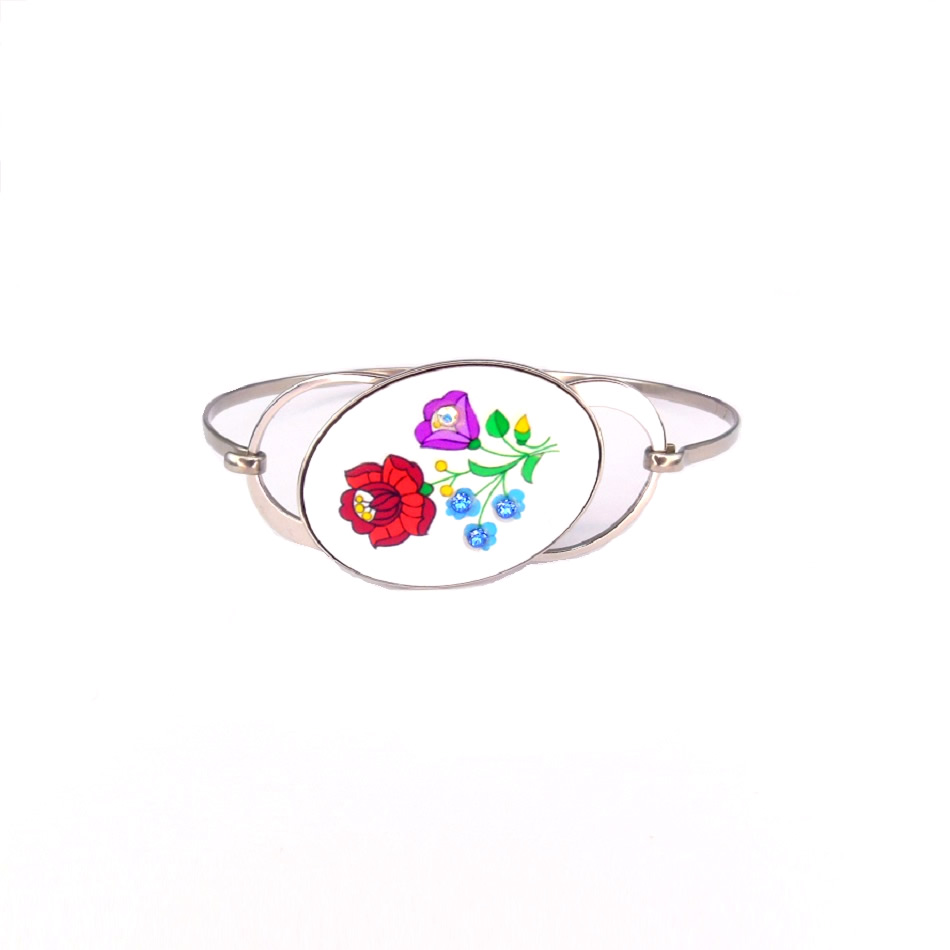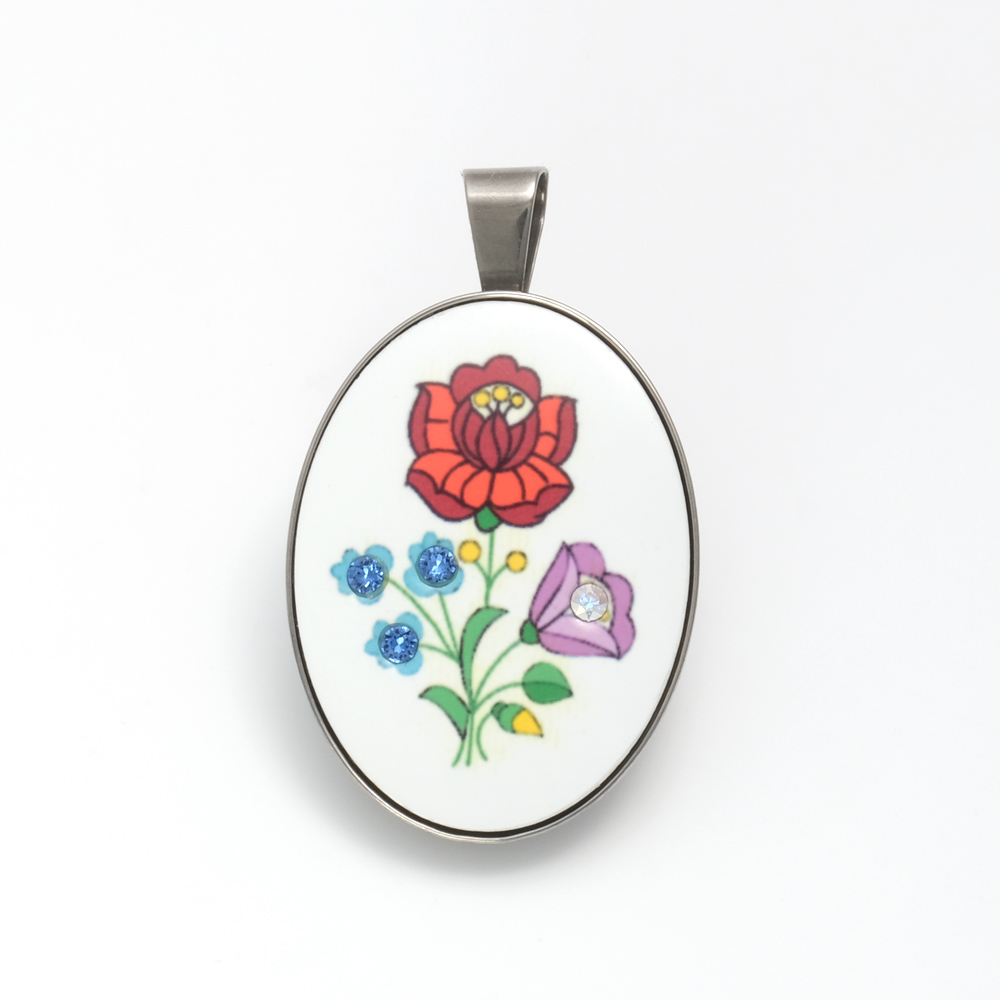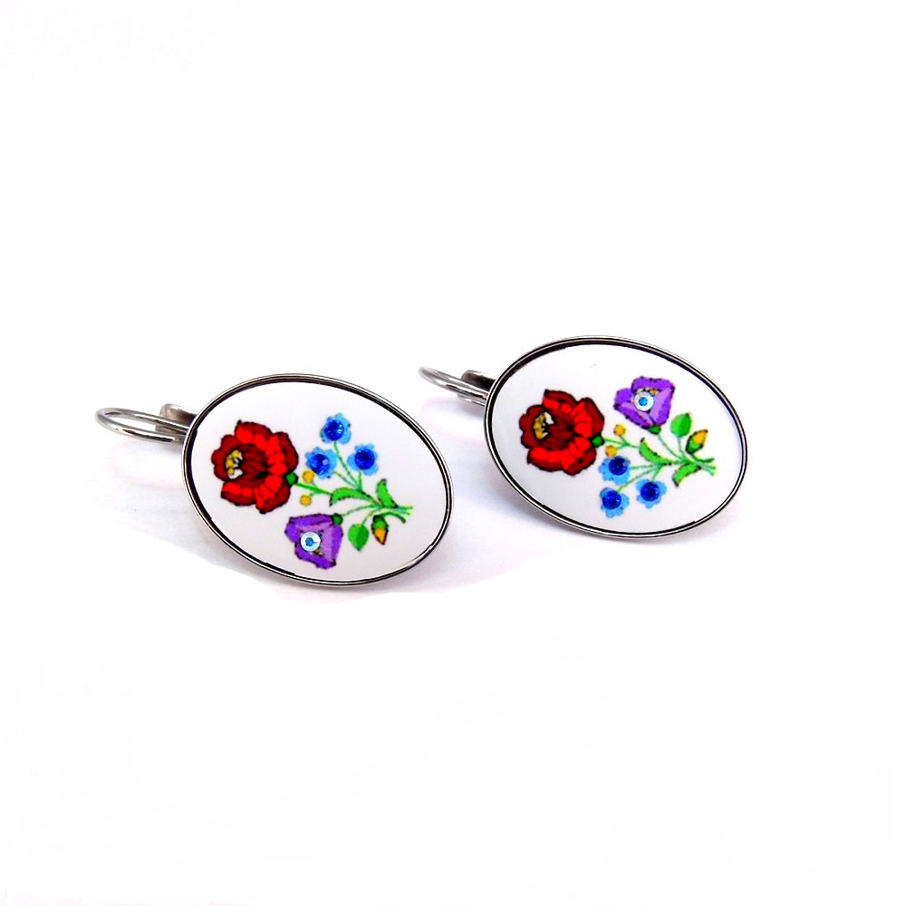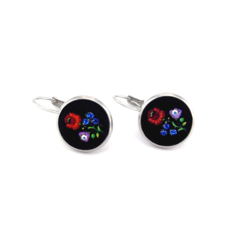 Nemesacél női fülbevaló kalocsai mintával, Swanis osztrák kristályos díszítéssel, stekkeres, (bedugós zár megoldással), hosszúság 3.0 cm (a karkötőjével és medáljával szettben is megvásárolható).