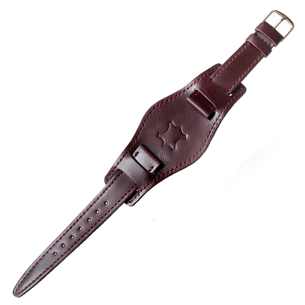 Magyar gyártású, jó minőségű valódi bőr pilóta óraszíj, fényes, bordó árnyalatú barna színben.