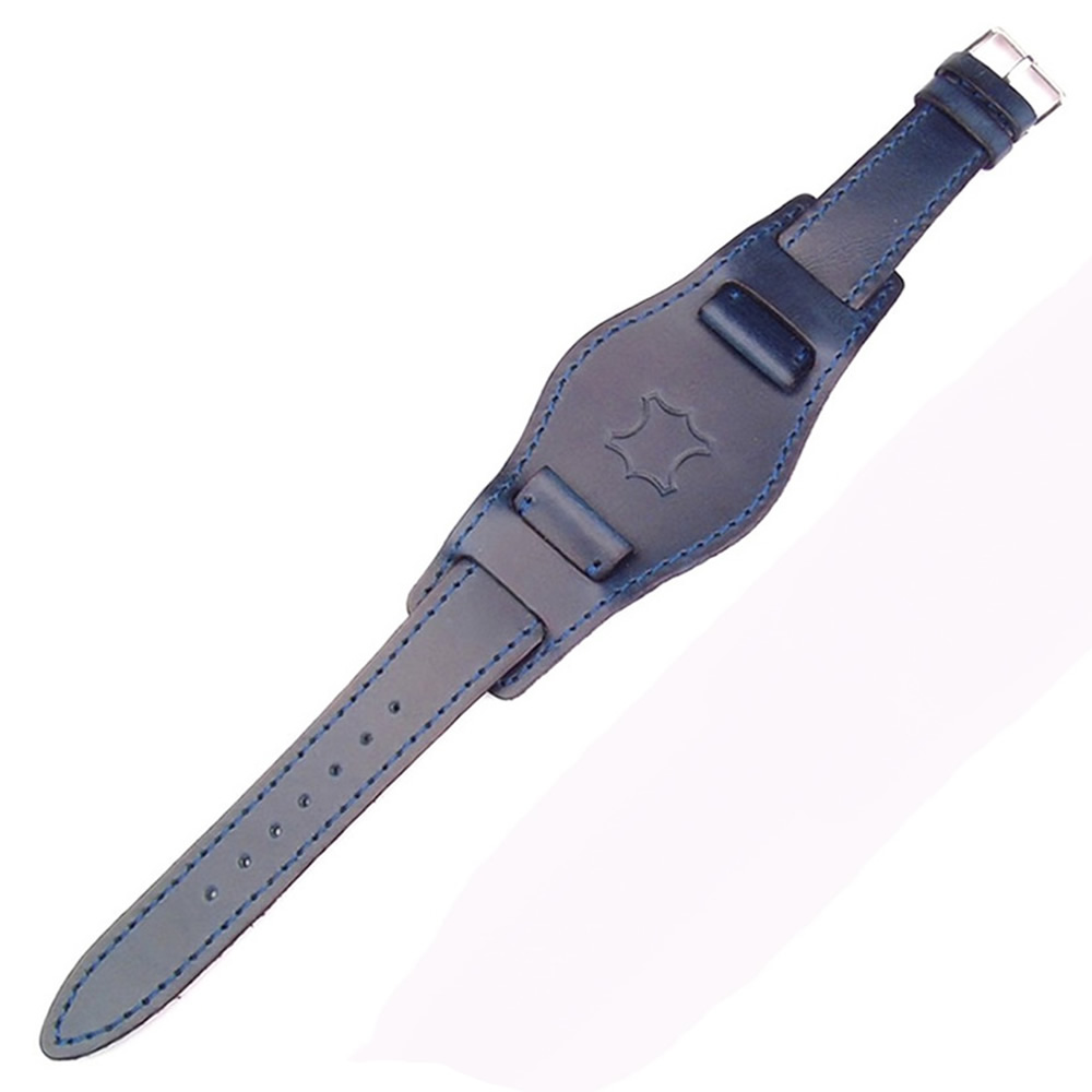 Magyar gyártású, jó minőségű valódi bőr pilóta óraszíj, kék színben. Szélesség 18, 20 mm, az óratok méretétől függően változó a hosszúság.
