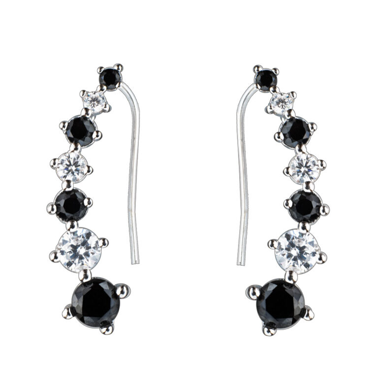 Ezüst fülcimpa fülbevaló - Fekete kövekkel