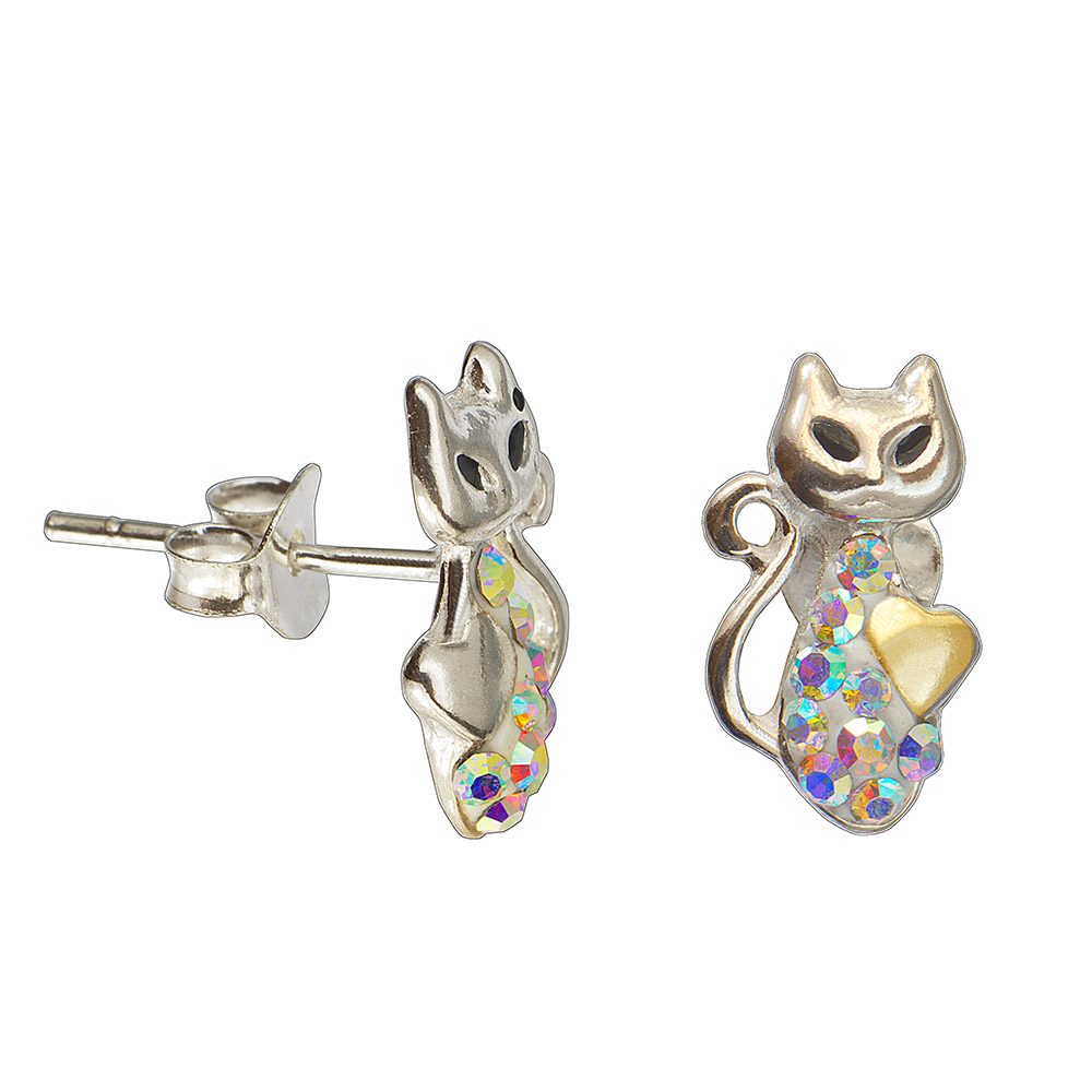 Ezüst fülbevaló – Cica – Színjátszó, AB színű kövekkel