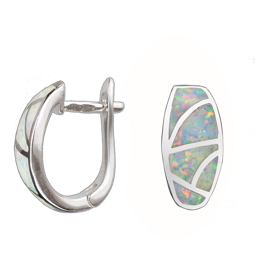 925-ös finomságú, ezüst fülbevaló fehér opál kővel, ródiumozott, francia kapcsos, hosszúság 15.0 mm, 4.0 gramm Díszdobozban szállítjuk.