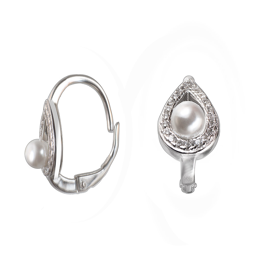 925-ös finomságú, ezüst gyöngy fülbevaló cirkonia kövekkel,