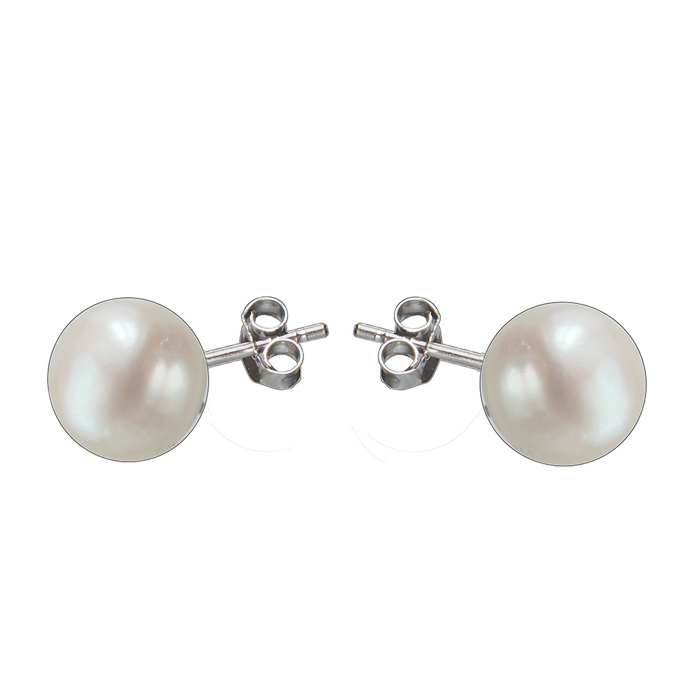 925-ös finomságú, ezüst tenyésztett gyöngy fülbevaló, ródiumozott, stekkeres, átmérő: 9 mm, 2.0 gramm.