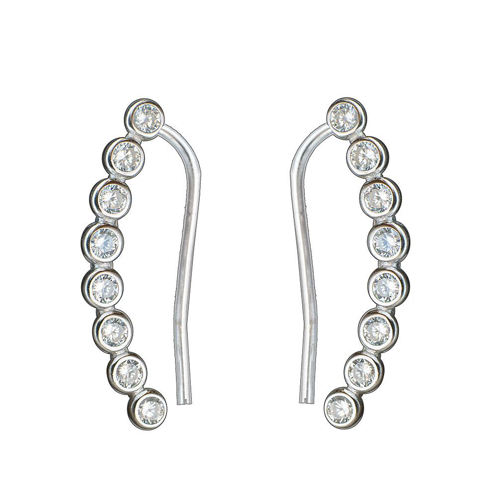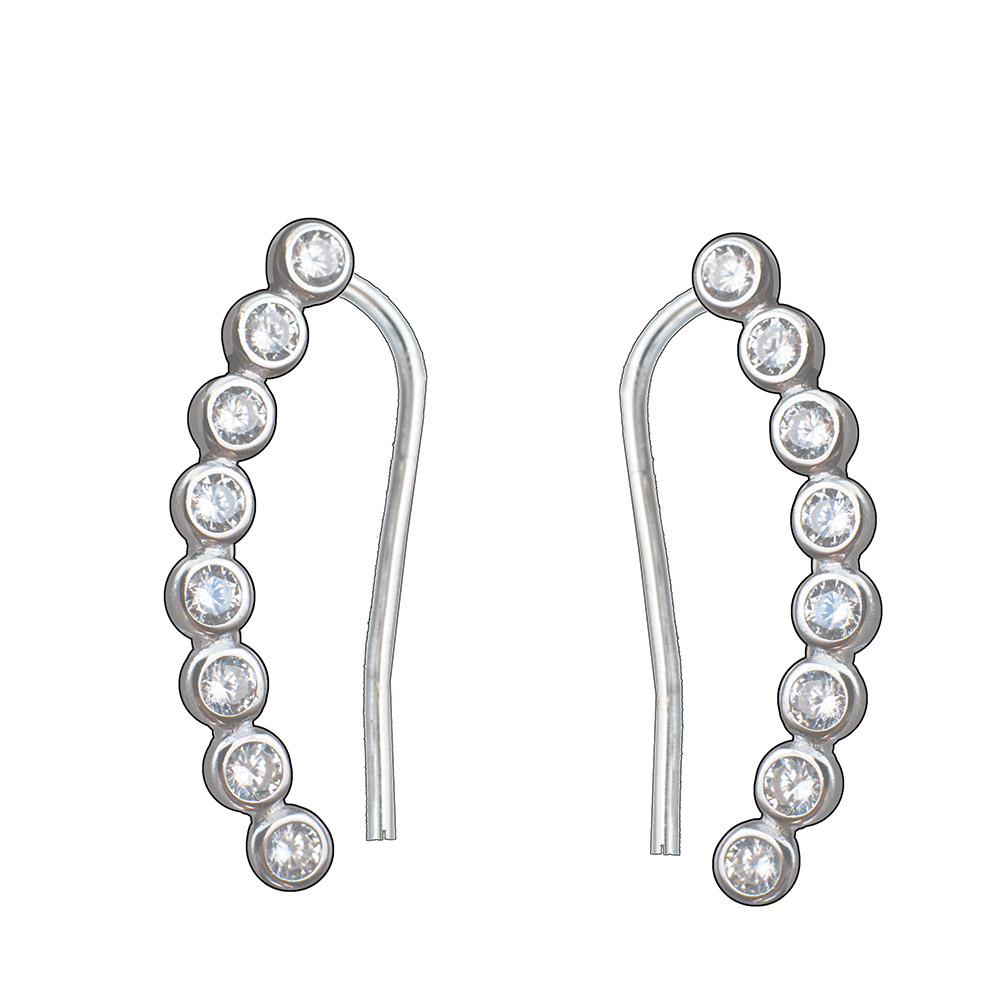 925-ös finomságú ezüst fülcimpa fülbevaló, akasztós kivitelezés és tökéletesen illeszkedik a fülcimpára, fehér cirkónia kövekkel, button foglalatban, ródiumozott, hosszúság 28.0 mm, 2.6 gramm (párban)
