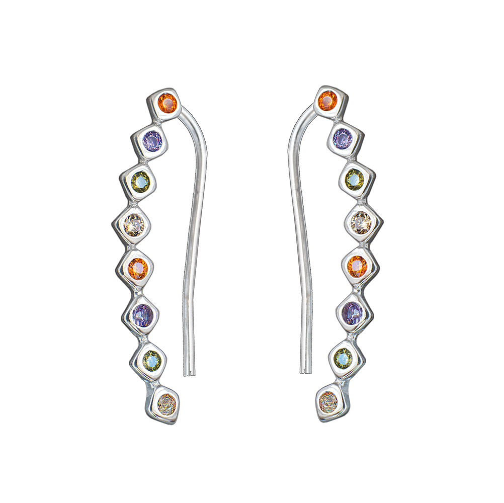 925-ös finomságú ezüst fülcimpa fülbevaló, akasztós kivitelezés és tökéletesen illeszkedik a fülcimpára, színes cirkónia kövekkel, ródiumozott, hosszúság 25.0 mm, 1.4 gramm (párban