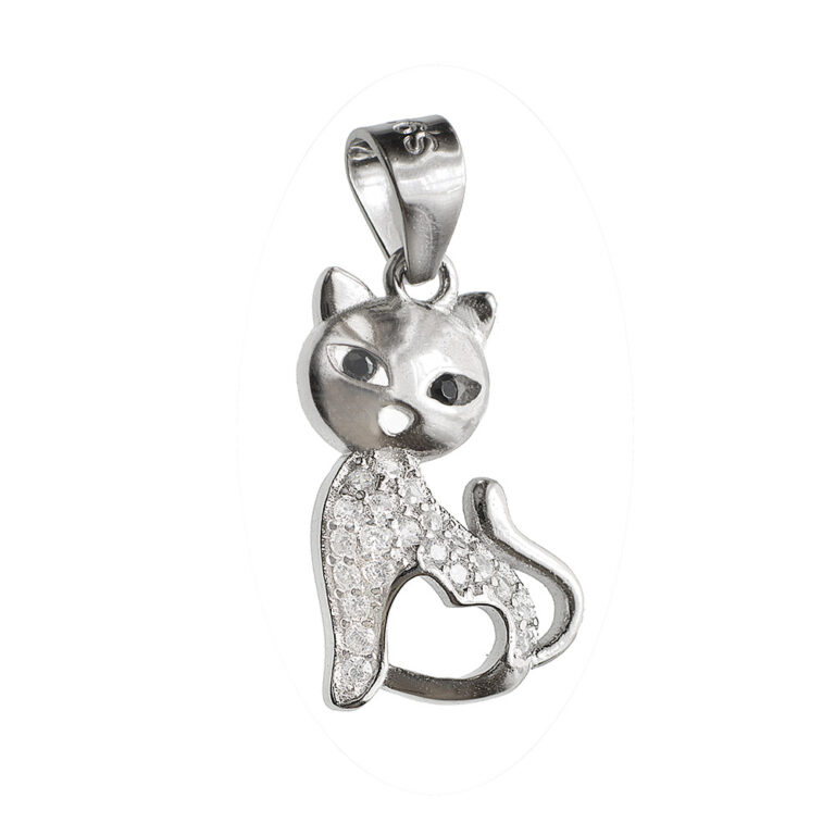 925-ös finomságú ezüst medál, kék opál kővel, ródiumozott, hosszúság 28 mm, 2.3 gramm