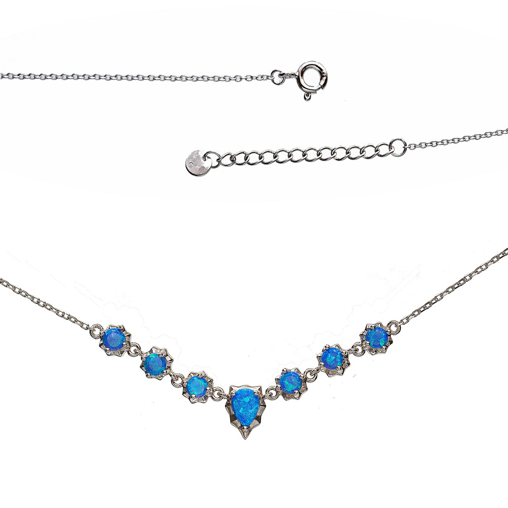 925-ös finomságú ezüst női nyaklánc kék opál medállal, ródiumozott, állítható hosszúság: 42.0- 47.0 cm, 5.2 gramm Díszdobozban szállítjuk