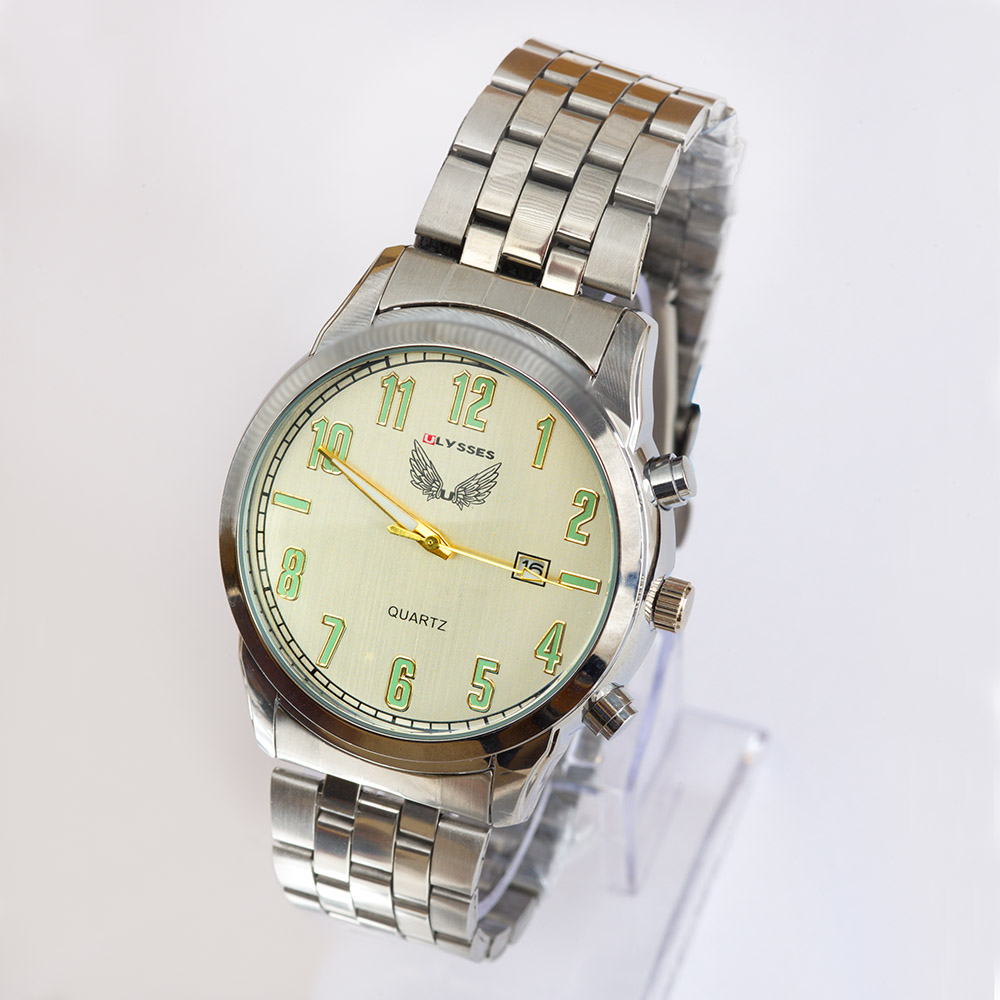 Lysses analóg férfi karóra, quartz szerkezettel és acél szíjjal, naptáros