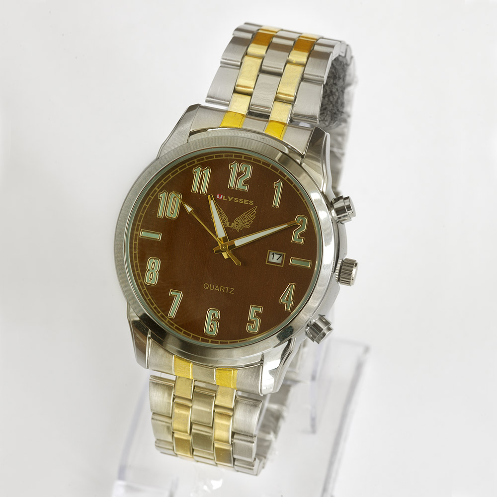 Lysses analóg férfi karóra, quartz szerkezettel és acél szíjjal, naptáros,
