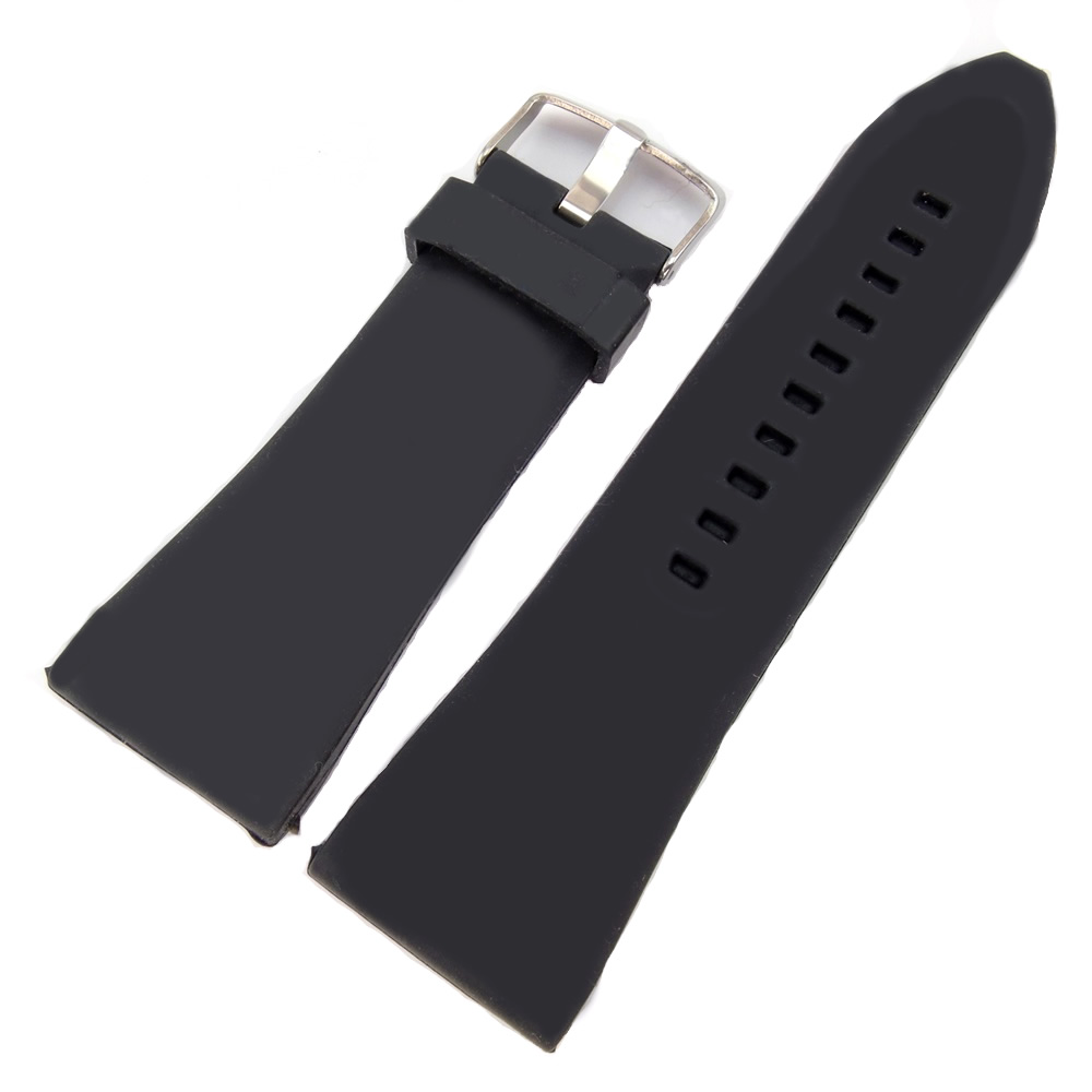 Fekete szilikon óraszíj. Szélesség 28 mm, a hosszúság állítható.